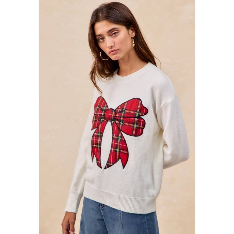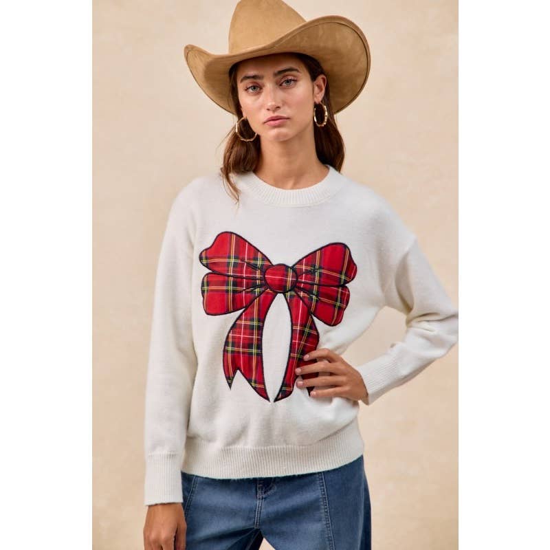 BiBi Style Clothing Features: ⨠Soft knit fabric for cozy comfort š Festive plaid bow detail for a charming holiday accent š Classic fit with a touch of seasonal style š Perfect for Christmas parties, family gatherings, or casual wear š A stylish way to spread holiday cheer BiBi, So Me, HYFVE, Final Touch, Very J, Love Tree, Noflik, PETRA 153, Camellia Keywords :Women Clothing, Apparel, Western Apparel, jeans, denim, Jacket, Shacket, sweater, Maxi dress, Young contemporary, Missy, Dress top, Plus sizes womens clothing, Sets, Boho clothing, Linen clothing , Romper, Jumpsuit , Tops, western apparel, linen dress , summer dress, kimono, Floral dress, Gingham , Maxi skirt , summer tops , Mini dress , Dresses for women Spring, swimwear, linen , wedding guest dress, white dress