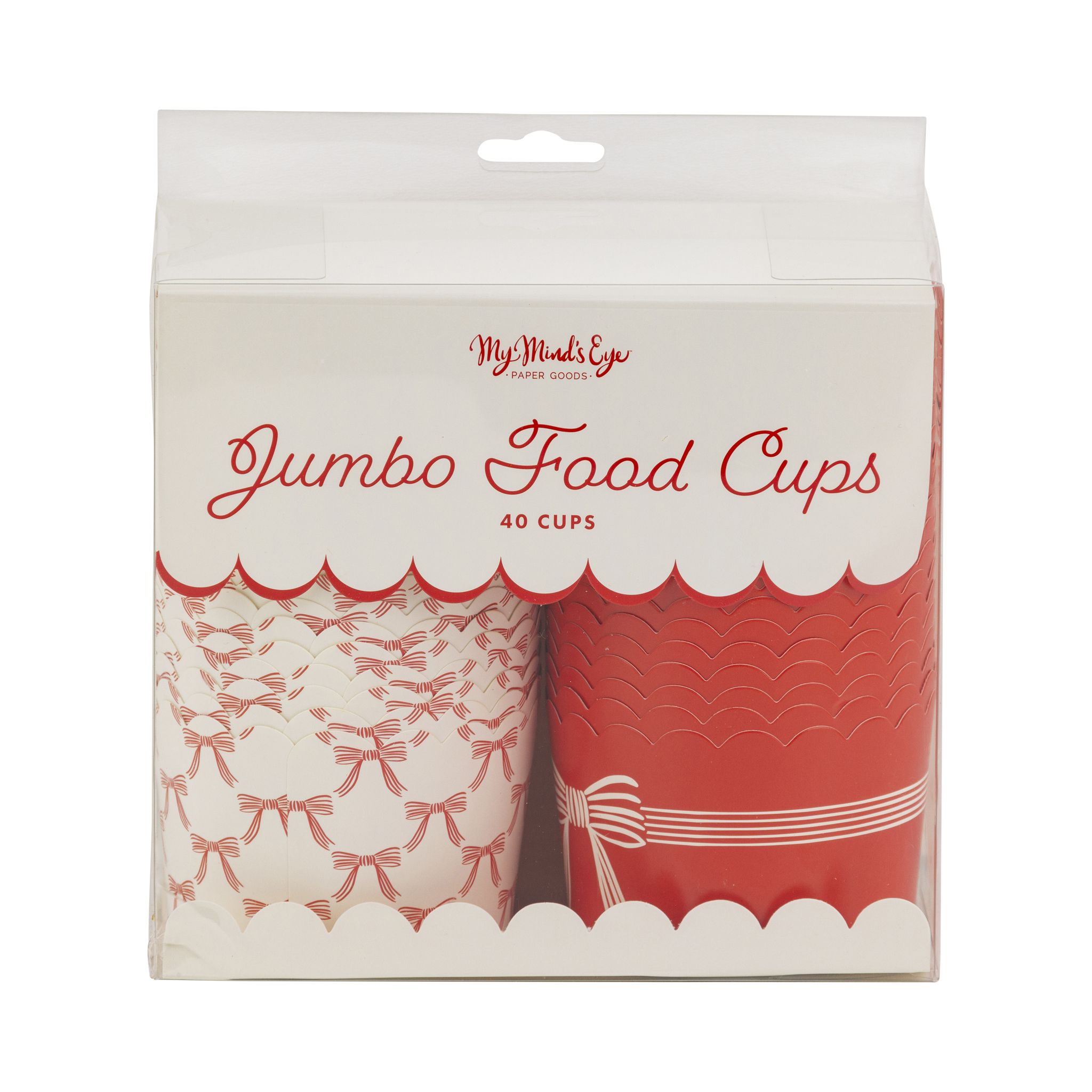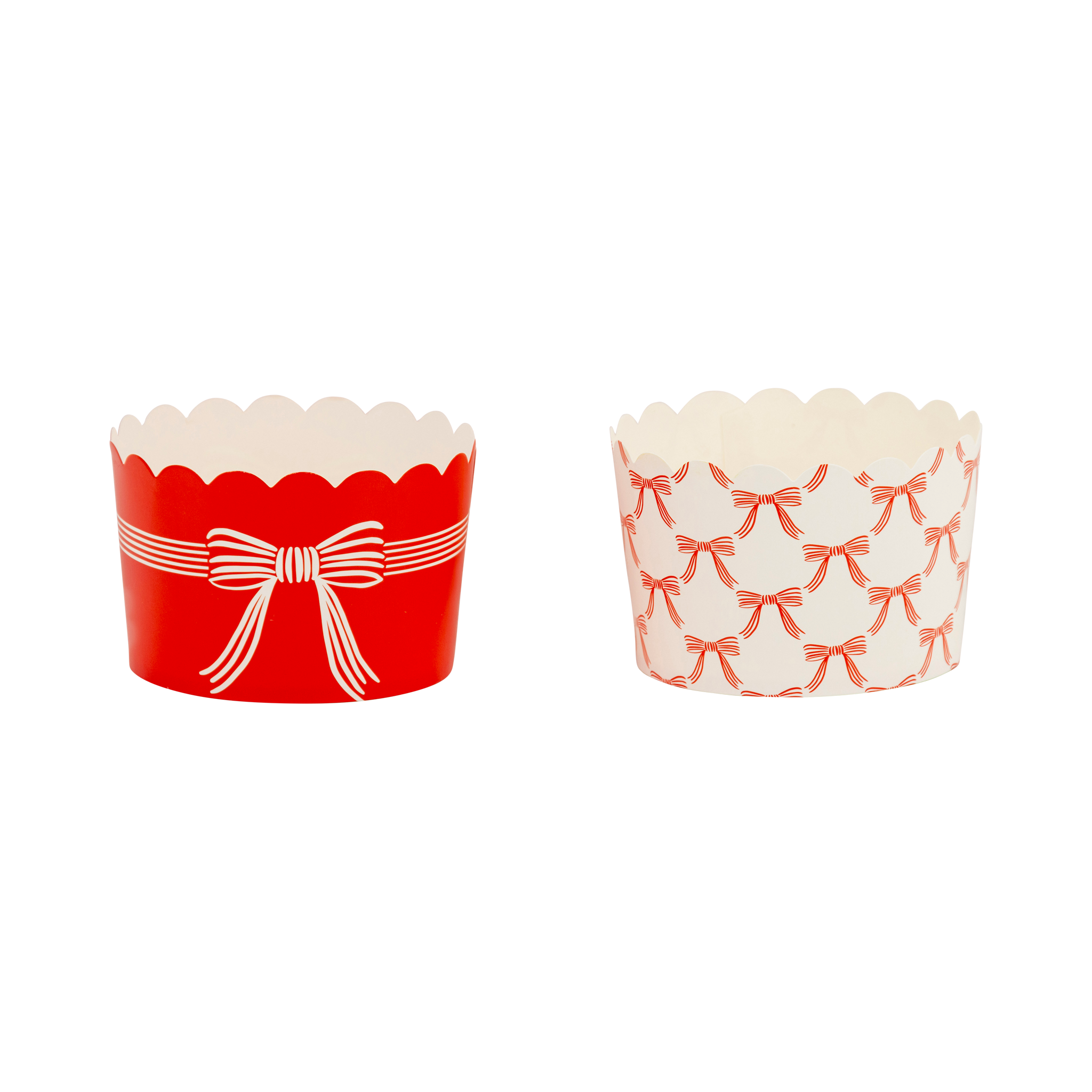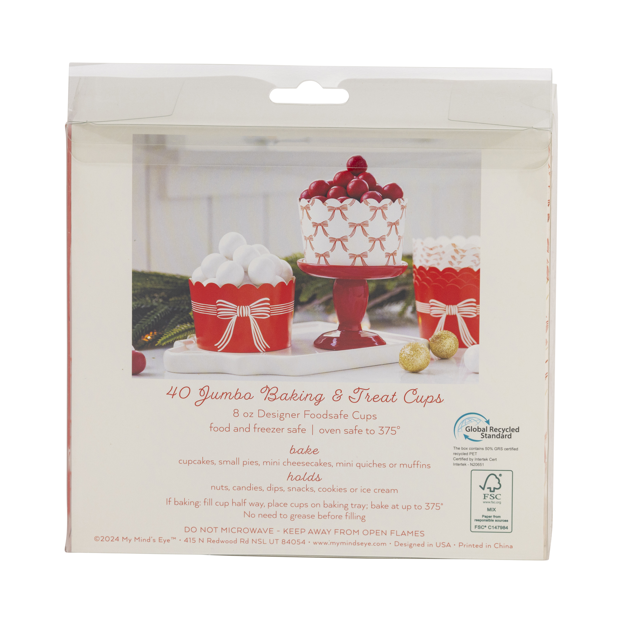 Jazz up your Christmas party treats with our JUMBO Red Cream Bows 8 oz Baking Cups! These festive cups are perfect for showcasing your holiday treats. With 40 in a pack, you'll have plenty for all your Christmas baking needs. You get 40 JUMBO baking cups in each box set. 20 of 2 coordinating designs. • 40 - 8 oz Baking Cups • 2 designs, 20 of each design • Food and freezer safe, oven to 375º • Baking directions: fill cup half way, place cups on a baking tray • Do Not Microwave • gold foil 3 SETS MAKES ONE WHOLESALE PACK. Note: Limited Run pieces may be carried by larger platform and box locations in your area.