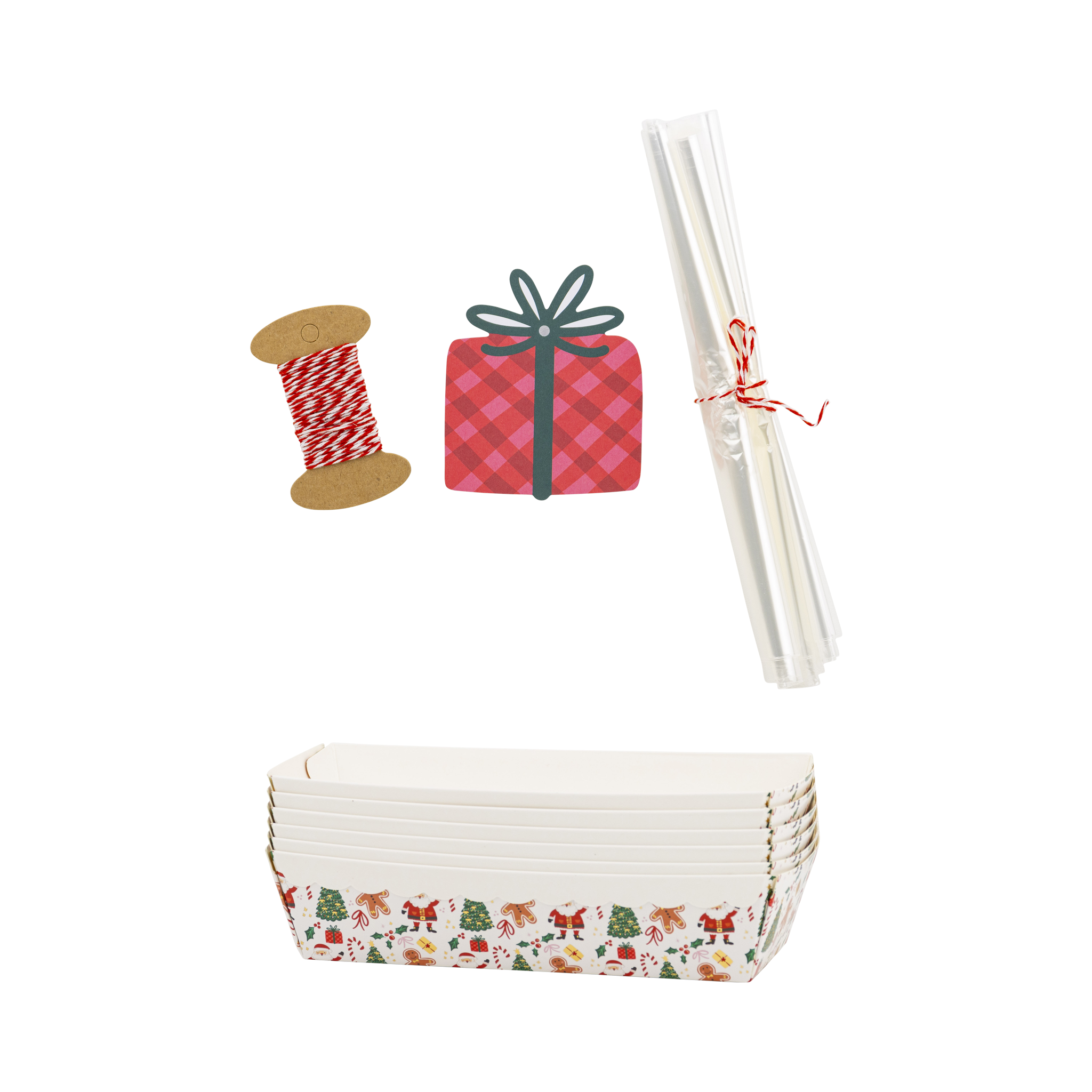 Get into the holiday spirit with our Foil Christmas Icons Loaf Pan Set. This set includes festive Christmas icons loaf pans, perfect for baking up some tasty treats for your neighbors (and yourself!). Spread some holiday cheer with these fun and practical gifts. * Six 7.5" x 3.25" x 2" paper loaf pans * 6 Designer tags * 6 Cellophane bags * 4 yards of baker's twine * gold foil 3 SETS MAKES ONE WHOLESALE PACK.
