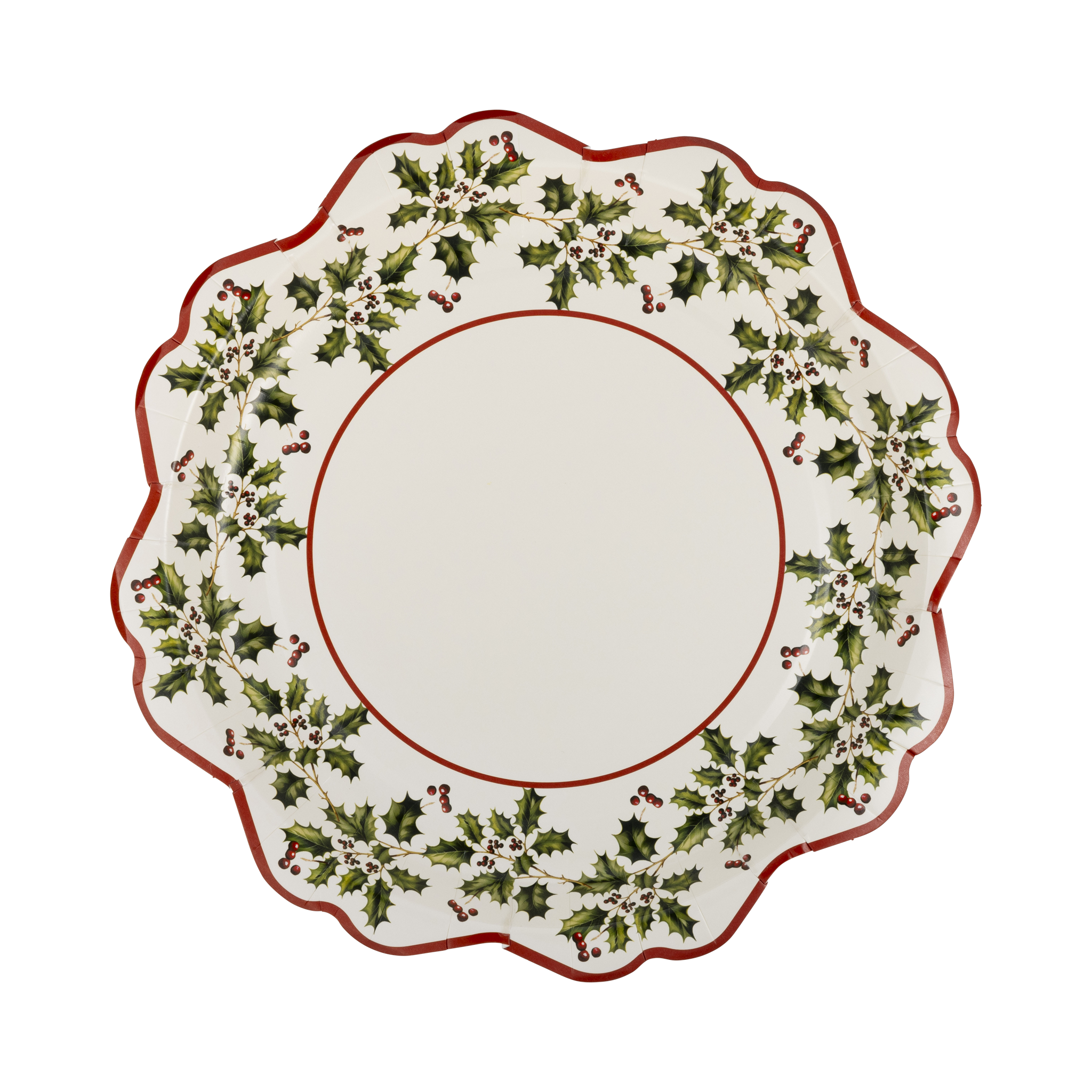 Add some festive flair to your holiday table with the Holly Ivy Shaped Plate. Designed with holly ivy, this plate brings a touch of Christmas spirit to any meal. Perfect for serving up your favorite holiday treats, this plate is sure to bring joy and cheer to your gatherings. Happy holly-days! * 8 - 9" shaped paper plates Note: Limited Run pieces may be carried by larger platform and box locations in your area.