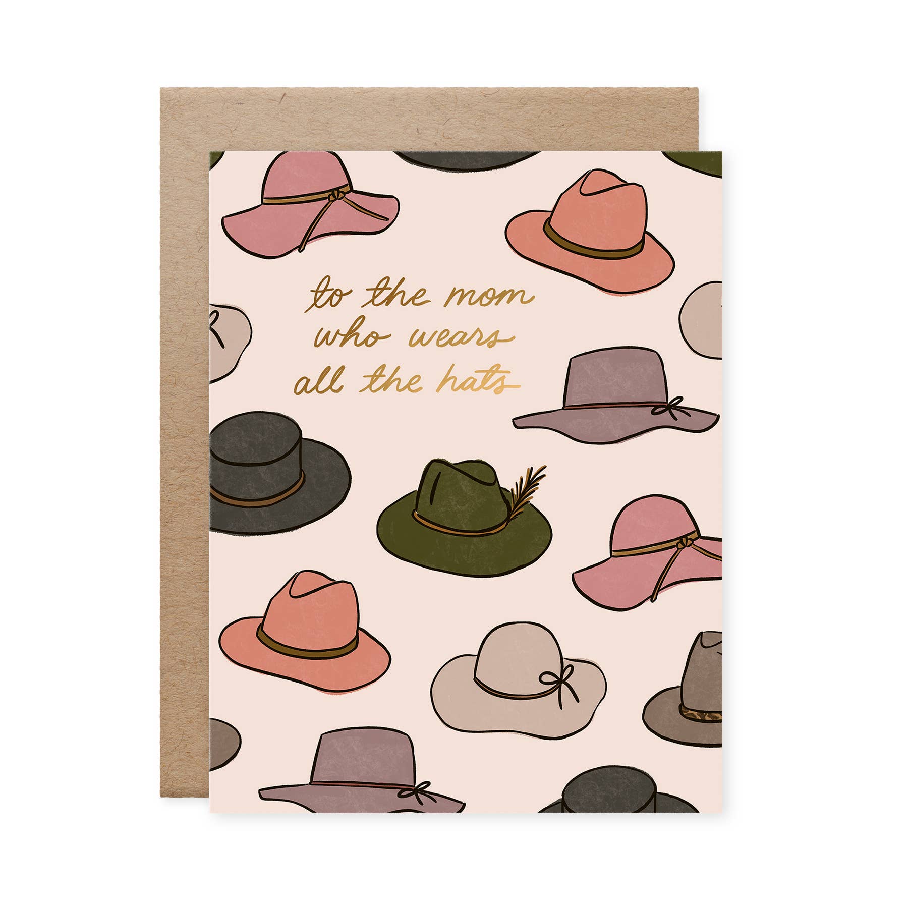 A gold foil detailed Mother’s Day card for “the mom who wears all the hats"—literally or figuratively! This card blesses more than one mom! 15% of sales from each card are donated to a mother & baby in need through New Beginnings - A Home for Mothers in Milwaukee, WI. Details: • A2 • recycled kraft paper envelope • blank inside Designed and printed in Wisconsin.