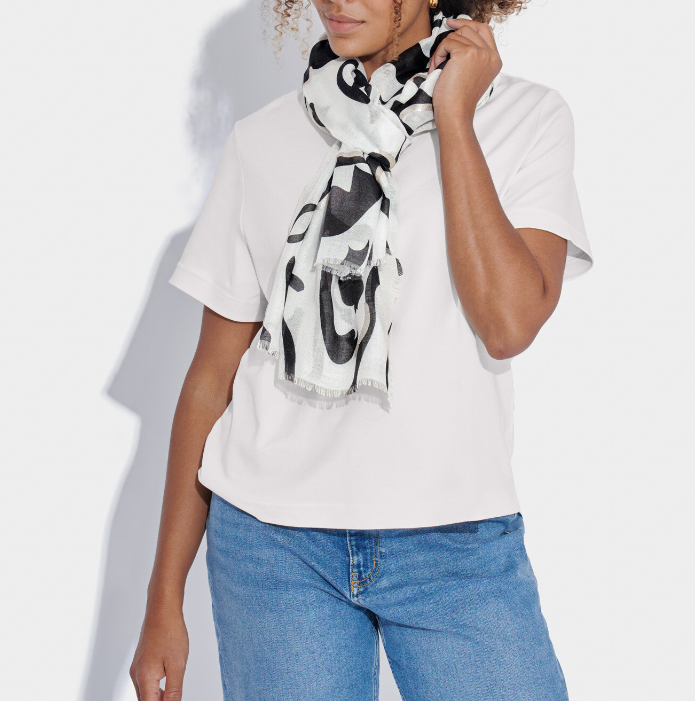Stand out and shine bright with our brand-new Zebra Foil Printed Scarf. This beautiful scarf features a lightweight design, perfect for year-round styling, shimmering gold foil metallic detailing, and a stylish frayed finish. Whether it's worn as a chic shawl, tied around your favorite handbag, or snugly draped around your neck, this versatile accessory is designed to be worn from this season to the next! Plus, don't forget to complete your order with one of our gorgeous. 100% Polyester