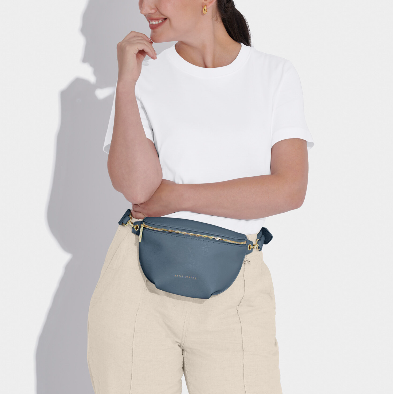 Our Maya Belt Bag in Navy is here to accompany you on every summer adventure. With a captivating selection of six warm-weather ready colorways, this vegan leather gem effortlessly blends fashion with functionality. The adjustable wide strap guarantees a comfortable fit, while the internal pocket ensures effortless organization of small essentials. The gold-tone zip fastening not only adds a touch of elegance but also secures belongings, allowing for carefree dancing at festivals and beyond.