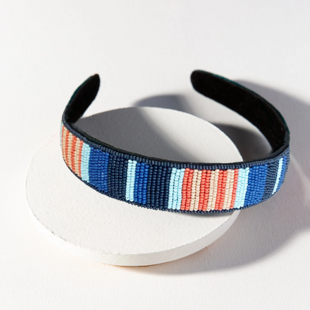 Beaded Headband - Lapis and Coral Stripe (SBHA0301LA)