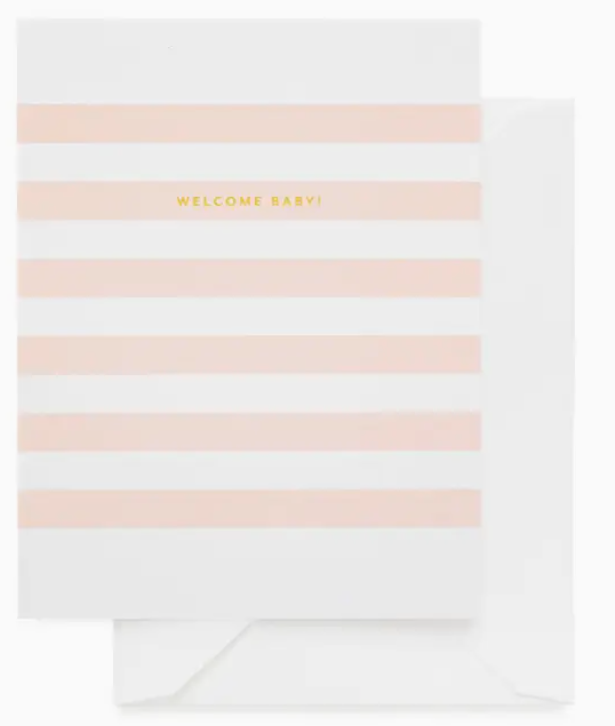 Pink Stripe Welcome Baby Card