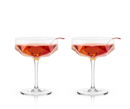 Raye Faceted Crystal Coupe Glass Set