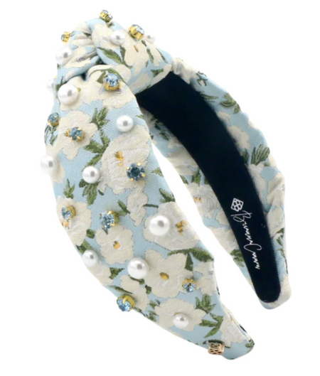 Pink & Blue Brocade Headband w/Crystals and Stones