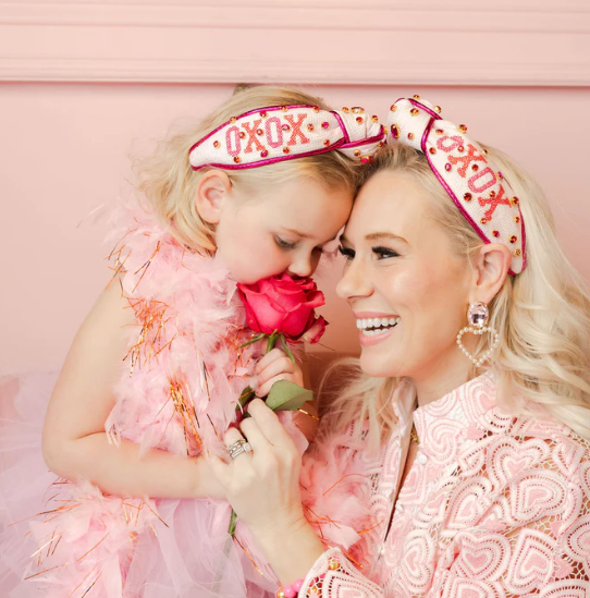 Adult XOXO Cross Stitch Headband with Red Crystals