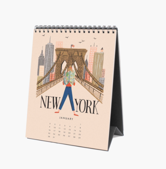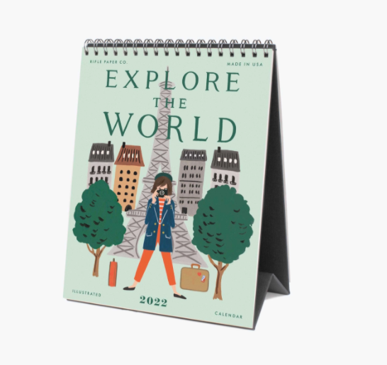 Travel somewhere new with each turn of the page. Our Explore The World calendar features 12 illustrations of our favorite destinations around the world on bright, full-bleed backgrounds, and the attached stand makes it easy to prop up at work or at home.