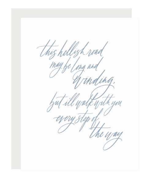 Letterpressed by hand in dusky blue ink on thick white paper and paired with a pale grey envelope.