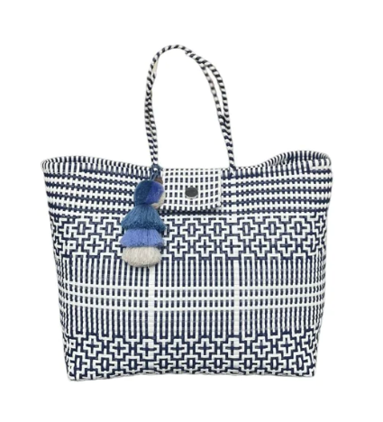Wipe with a damp cloth and allow to air dry. When used on the beach, rinse bag with a hose and the sand will self-drain through the small fibers of the bag. These artisan bags are flexible, allowing them to be bent and folded without damage. To maintain its shape, store in its original condition. Each bag is handmade and small frays are common.