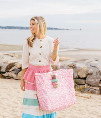 Wipe with a damp cloth and allow to air dry. When used on the beach, rinse bag with a hose and the sand will self-drain through the small fibers of the bag. These artisan bags are flexible, allowing them to be bent and folded without damage. To maintain its shape, store in its original condition. Each bag is handmade and small frays are common.