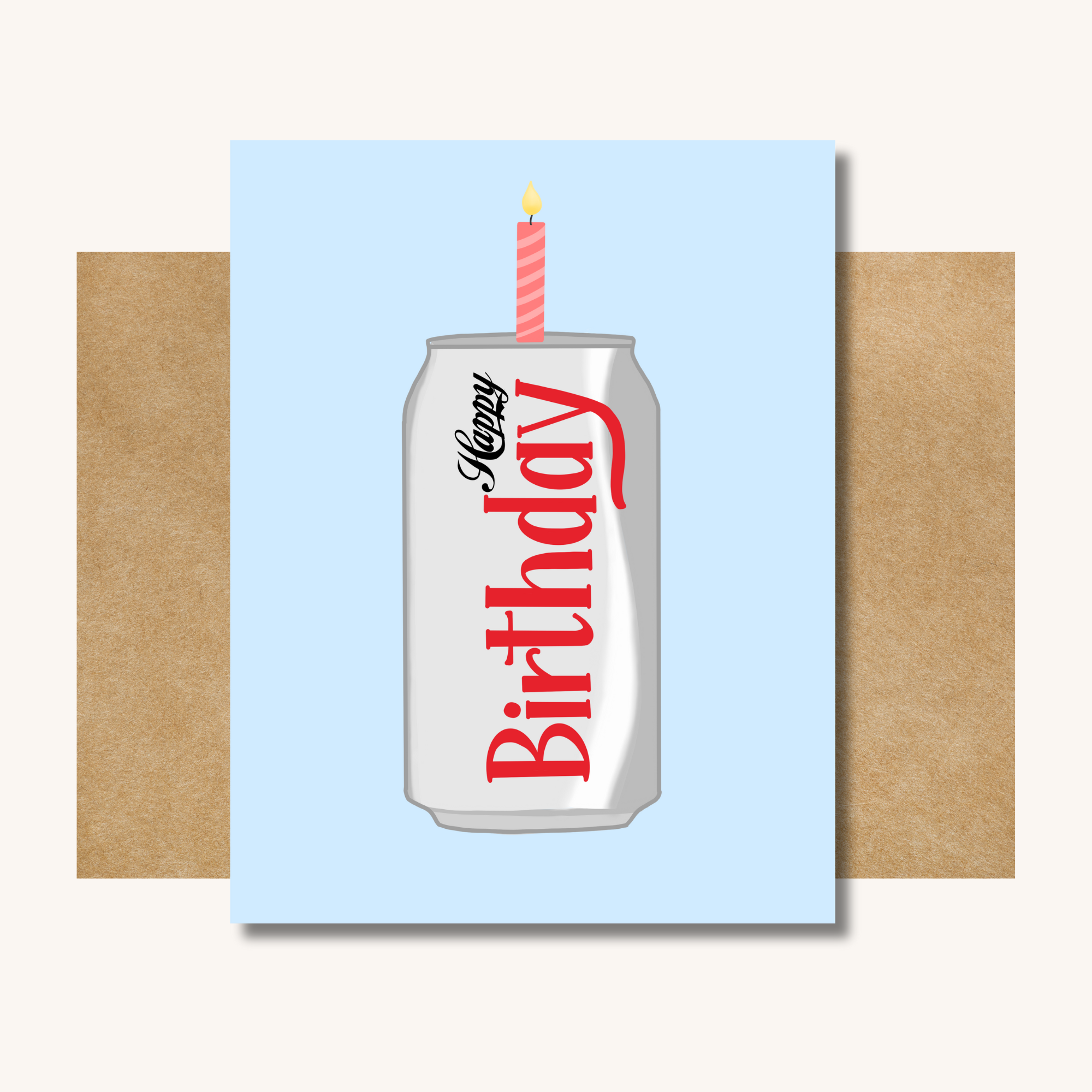 Card is perfect for any Diet Coke lover! Dimensions: 5.5” x 4.25”. Made with high quality 100lb linen paper. Blank on inside. Comes with one Kraft envelope per card. Cards are all individually packaged in a clear cellophane sleeve.