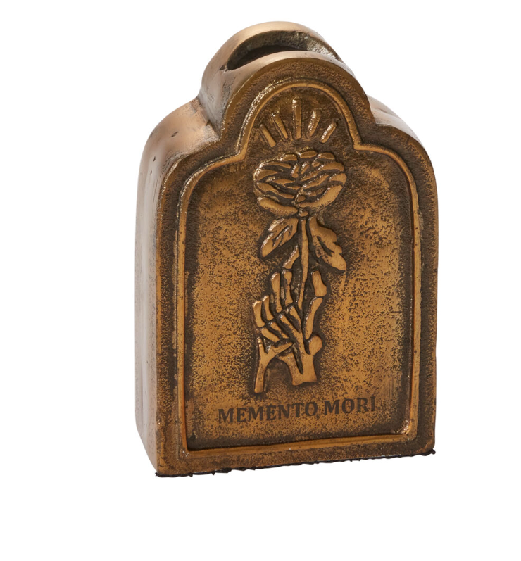 Bring a bit of delightful dread to your Halloween decor with the Til Death Budvase Collection. These recycled cast aluminum tombstone-shaped budvases feature intricate, dimensional designs—a skeleton hand holding a rose with the phrase "memento mori", and an eyeball inside a rose with the phrase "love you to death." Each budvase is perfect as a vessel for a few dried or fresh stems and serves as a spooky decorative object that can be layered together.