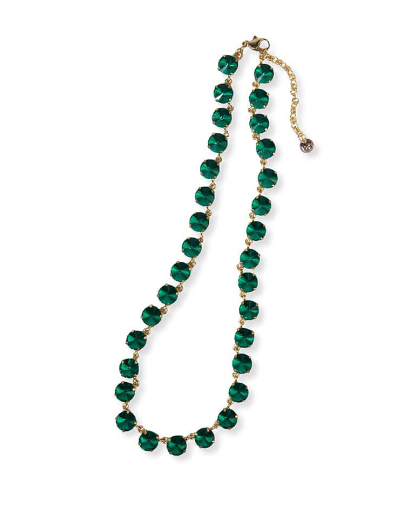 Embrace the captivating beauty of the Aurora Medium Round Stone Prism Necklace in Emerald. This necklace showcases medium round stones in a rich emerald green hue, symbolizing renewal and prosperity. With a length of 17.5" and a 2" extender, it provides versatility in wear. Pair it with the Etta bracelet for a coordinated and harmonious look, elevating your style with a touch of elegance and sophistication.