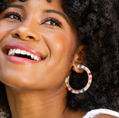 We're convinced that hoop earrings have superpowers. Add lightweight Luxe glass beads and a statement rainbow stripe pattern and you'll be running the world in no time.