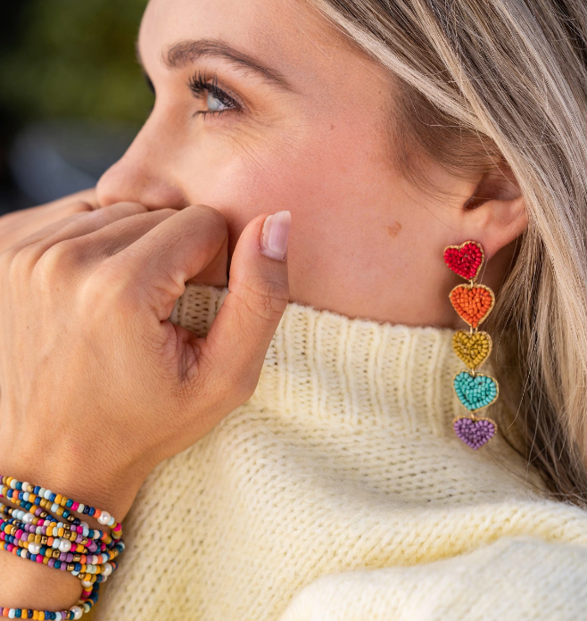 Falling in love is easy with these fun rainbow heart earrings! These lightweight statement earrings are here to demand attention, but in an effortless way, of course. The cutest posts in a classic rainbow color story will surely make everyone fall in love!
