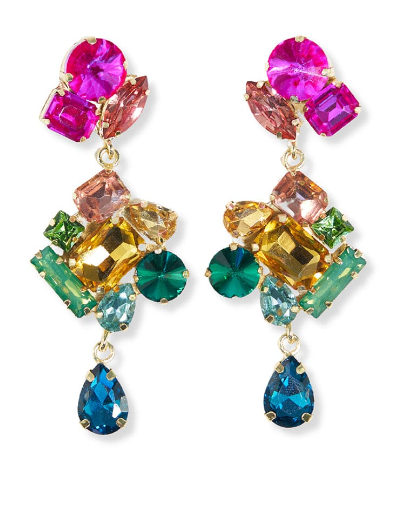 Bring a bit of va-va-voom to your jewelry box with the help of our Vivianne statement earrings. Deep amber, hot pink, emerald, and blue jewels in varying shapes + sizes bring tasteful interest and artful elegance to any look.Style tip: Life's short. Wear bold statement jewelry.