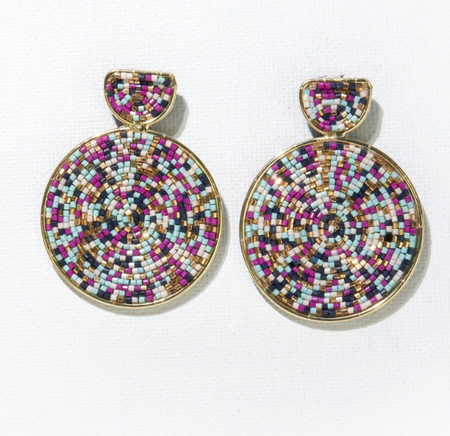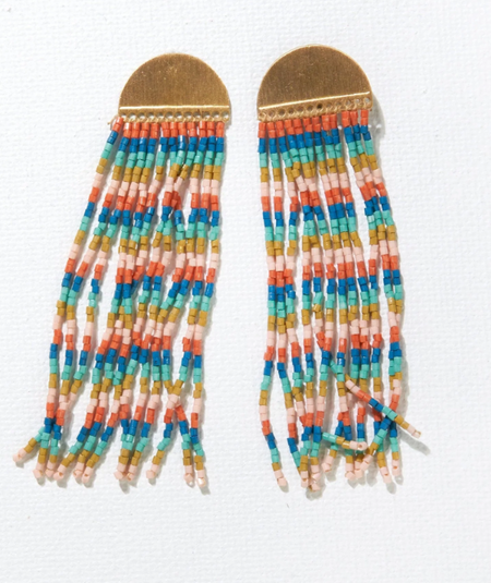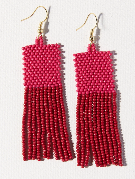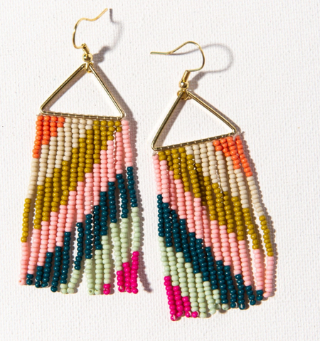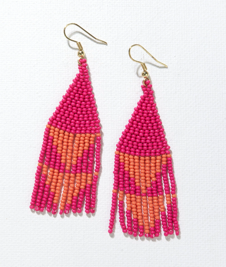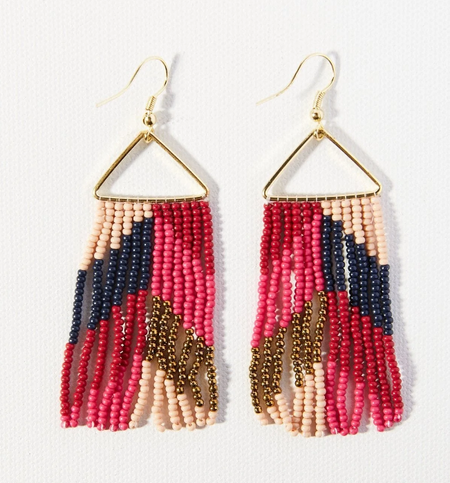 Beaded Fringe Triangle Earring - Hot Pink Navy