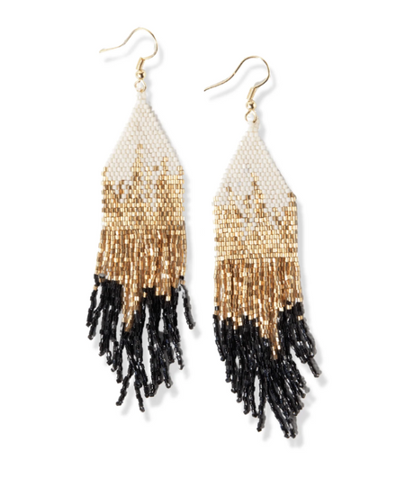 Beaded 4.25" Fringe Earring | Black Gold Ombre (LXER1114BL)