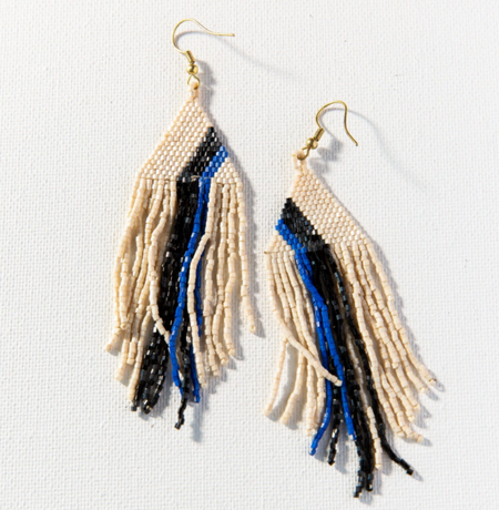 Sold Out Beaded 3.75" Fringe Earring - Ivory with Black Stripe (LXER0201) $30.00 Beaded 3.75" Fringe Earring - Ivory with Black Stripe (LXER0201)