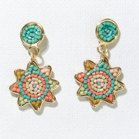 Sold Out Beaded Dot and Flower Earrings | Coral Mint $36.00 Beaded Dot and Flower Earrings | Coral Mint