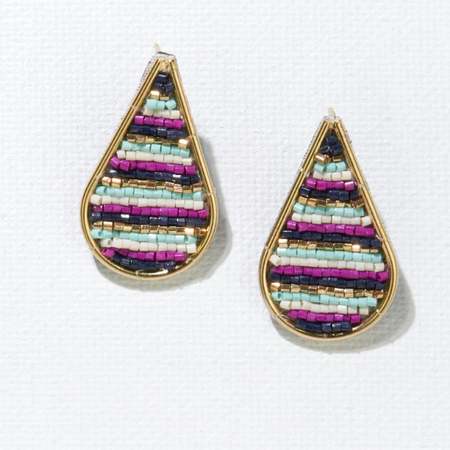 Sold Out Beaded Drop Stripe Earrings | Navy Magenta $36.00 Beaded Drop Stripe Earrings | Navy Magenta
