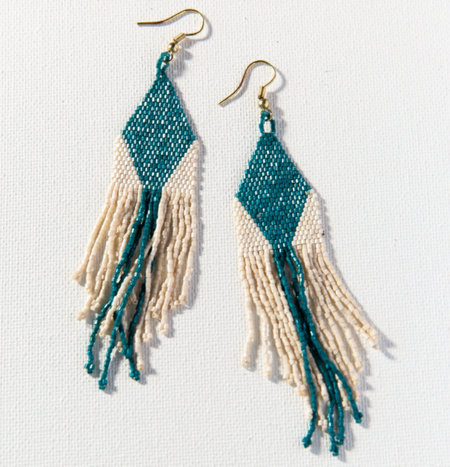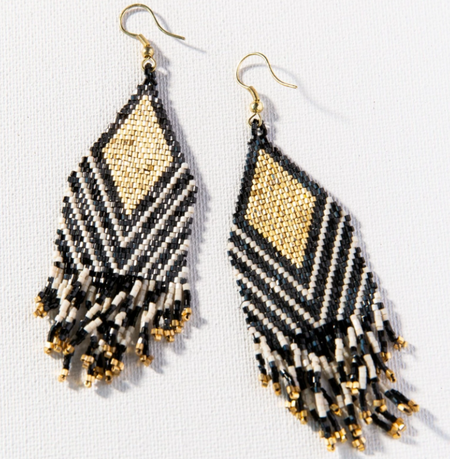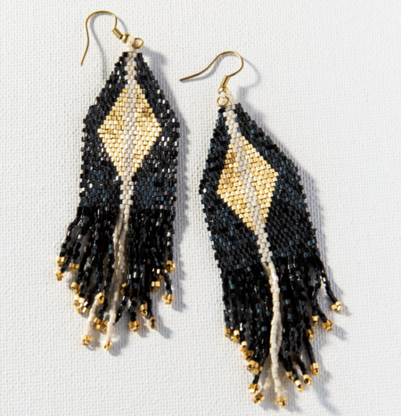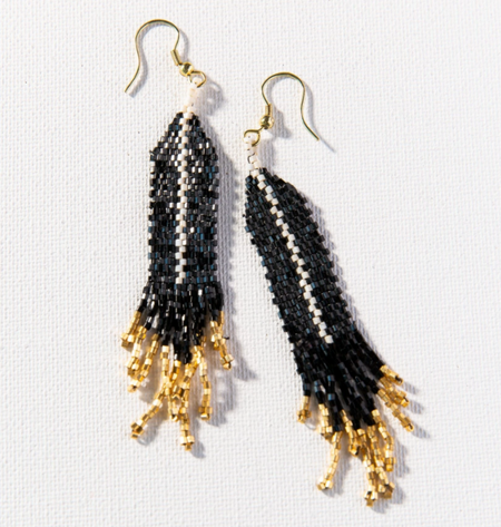 Beaded 4.25" Fringe Earring | Navy Gold Ombre (LXER1114NA)