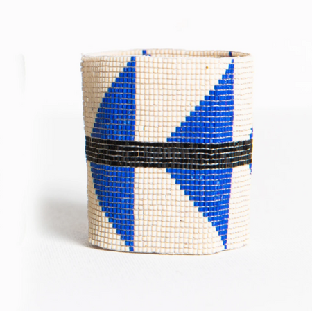 Thick Luxe Bracelet - Ivory with Lapis Triangle (LXBR0107)