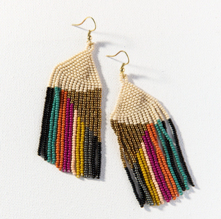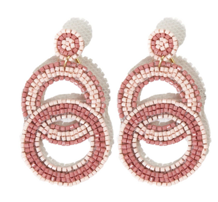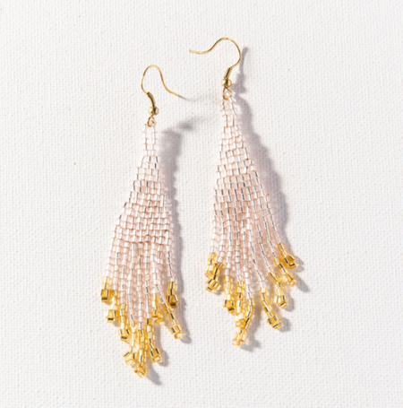 Beaded 3.75" Fringe Earring - Blush and Gold (PRER0205)