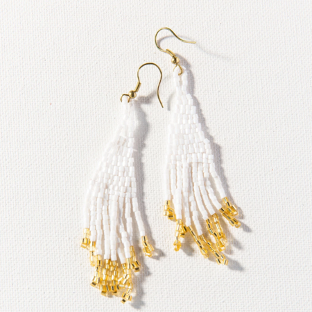 Beaded 3.75" Fringe Earring - White and Gold (PRER0207)