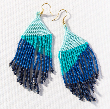Beaded 4" Fringe Earring - Blue Ombre (SBER1901LA)