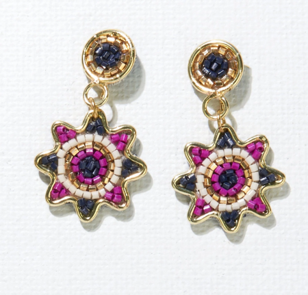 Sold Out Beaded Dot and Flower Earrings | Navy Magenta $36.00 Beaded Dot and Flower Earrings | Navy Magenta