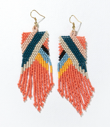 Sold Out Beaded 3.75" Fringe Earring - Coral Multi Angle (SBER2900C) $34.00 Beaded 3.75" Fringe Earring - Coral Multi Angle (SBER2900C)