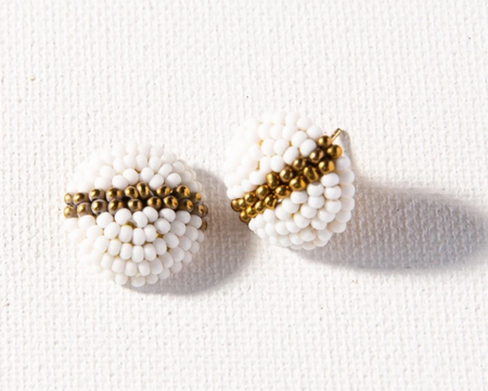 Sold Out Beaded Button Post - White and Gold (PSER0201WH) $20.00 Beaded Button Post - White and Gold (PSER0201WH)