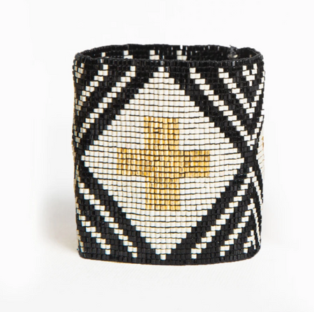 Sold Out Thick Luxe Bracelet - Ivory with Gold Triangles (LXBR0103) $50.00 Thick Luxe Bracelet - Ivory with Gold Triangles (LXBR0103)