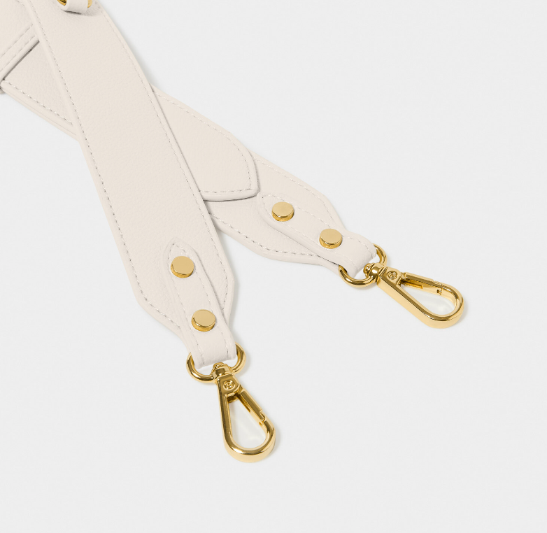 You can now personalize a selection of your favorite Katie Loxton Bags with our interchangeable Bag Straps! With an array of standout colorways to choose from, there's a perfect match for every outfit and occasion. Our PU Bag Strap in Off White showcases a soft vegan leather trim and gold-tone Katie Loxton branded hardware which adds a premium flair. The adjustable design ensures both comfort and style, whether worn over the shoulder or as a convenient hands-free crossbody, getting you from A to B effortlessly.