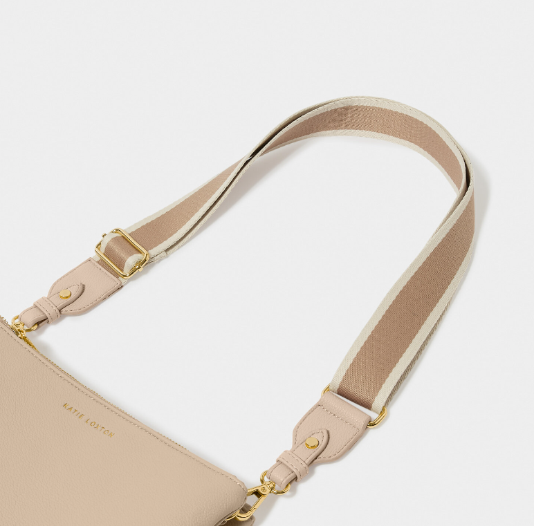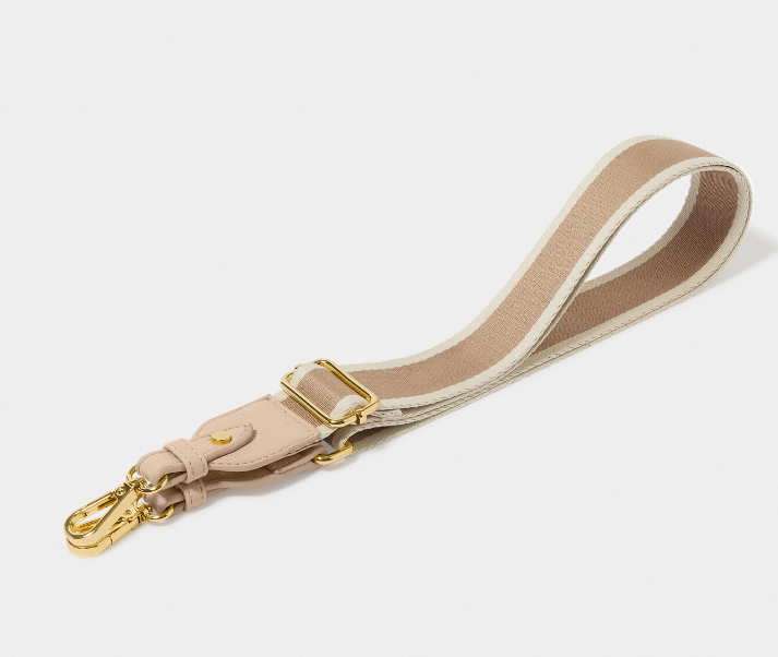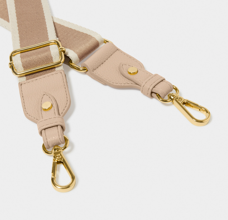 You can now personalize a selection of your favorite Katie Loxton Bags with our interchangeable Bag Straps! With an array of standout prints and color options to choose from, there's a perfect match for every outfit and occasion. Our Stripe Canvas Bag Strap in Tan showcases a lightweight canvas material adorned with soft vegan leather trim. The addition of Katie Loxton branded hardware adds a premium flair, while the adjustable design ensures both comfort and style. Wear over the shoulder or as a convenient hands-free crossbody, getting you from A to B effortlessly
