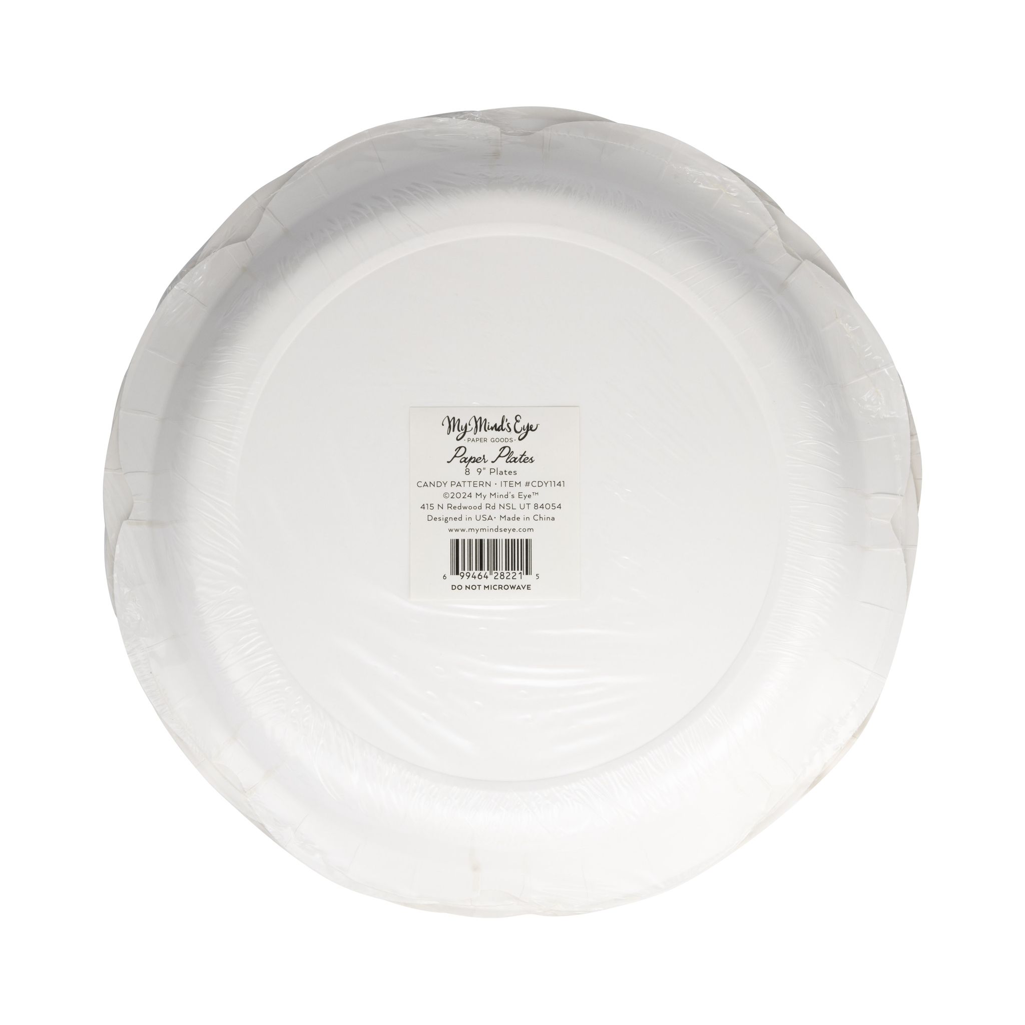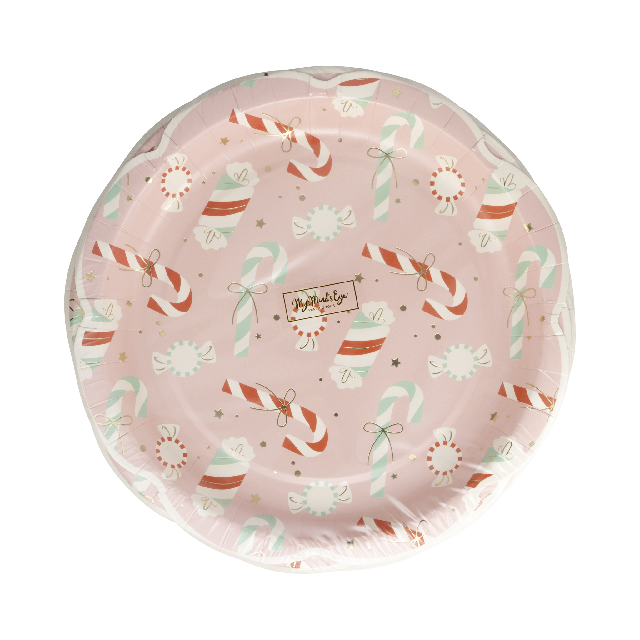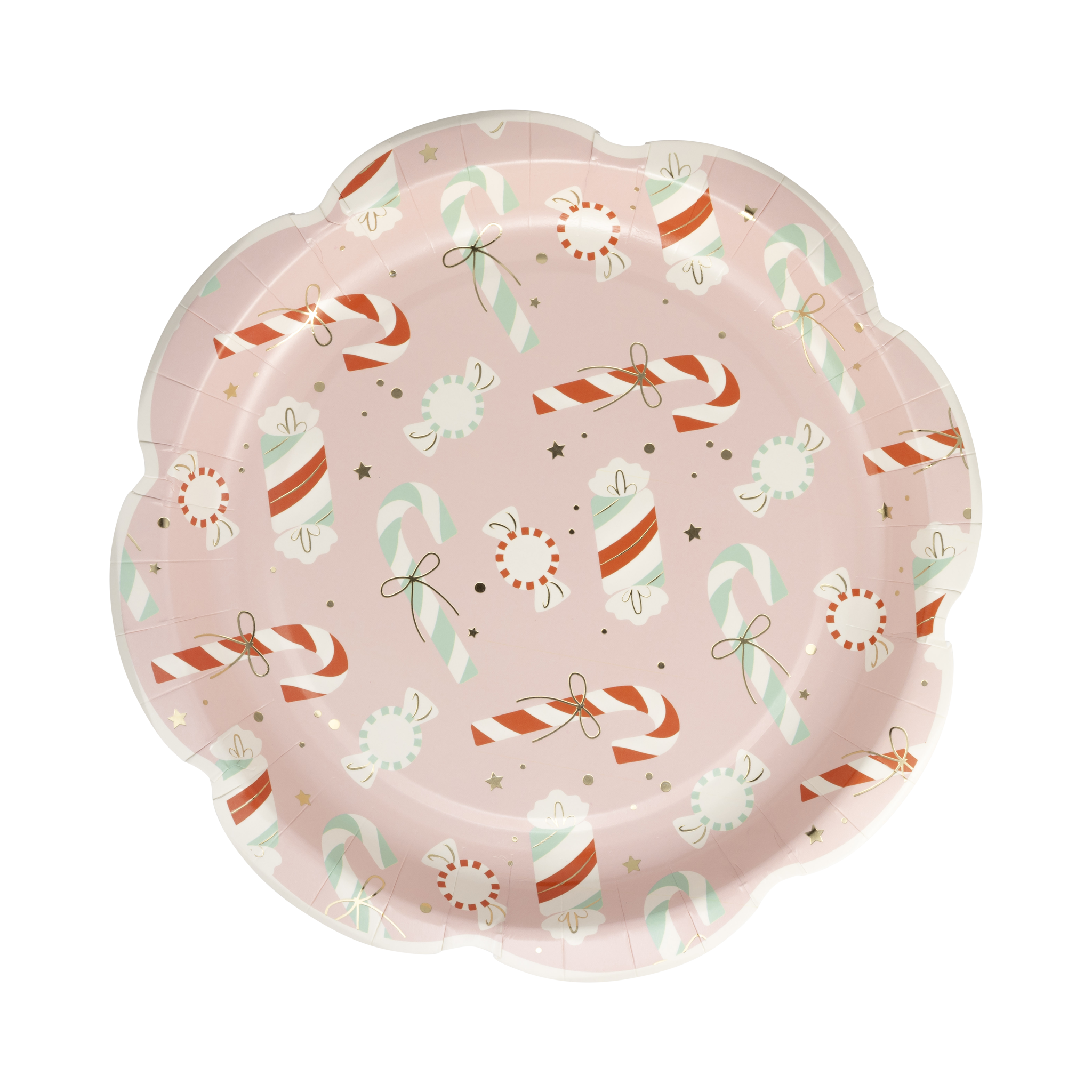 Sweeten your holiday table with our Candy Cane Lane Scatter Pattern 9" Plate. Sprinkled with festive candy shapes, this plate will add a playful touch to any meal. Perfect for serving your favorite holiday treats. Tis the season to indulge! • includes 8 paper plates • 9" x 9" • gold foil 3 sets of plates make 1 wholesale pack View the Collection HERE