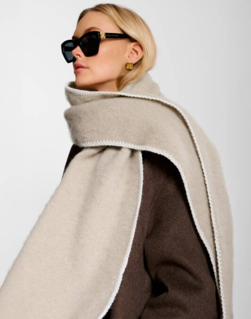 Wrap up in elegance for any occasion with our Whipstitch Scarf, featuring a super-soft material with beautiful whipstitch edge detailing and our signature gold-tone logo bar. The perfect accessory for year-round warmth and comfort.
