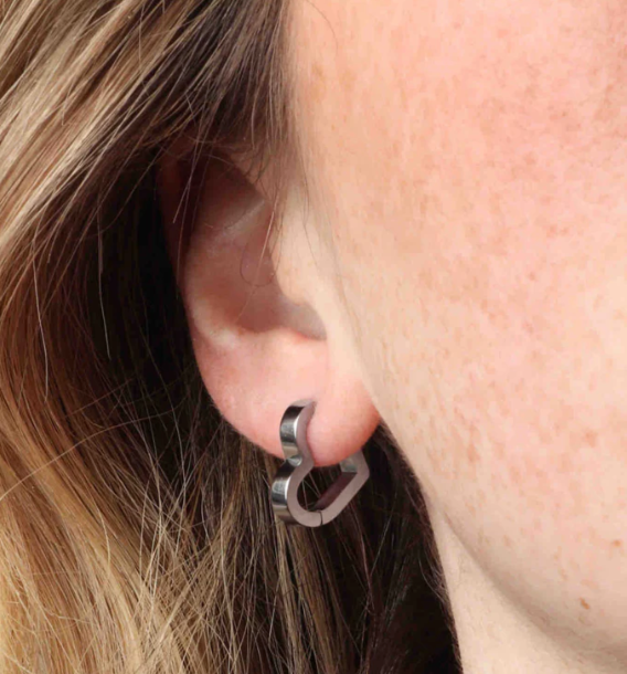 Our heart-shaped Dolly huggie hoop earrings offer a sweet, romantic touch with their dainty design and snug fit. Finished with an invisible click hoop closure that is even comfortable enough to sleep in, these huggies are perfect for everyday wear.
