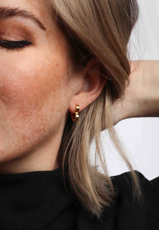 Our heart-shaped Dolly huggie hoop earrings offer a sweet, romantic touch with their dainty design and snug fit. Finished with an invisible click hoop closure that is even comfortable enough to sleep in, these huggies are perfect for everyday wear.