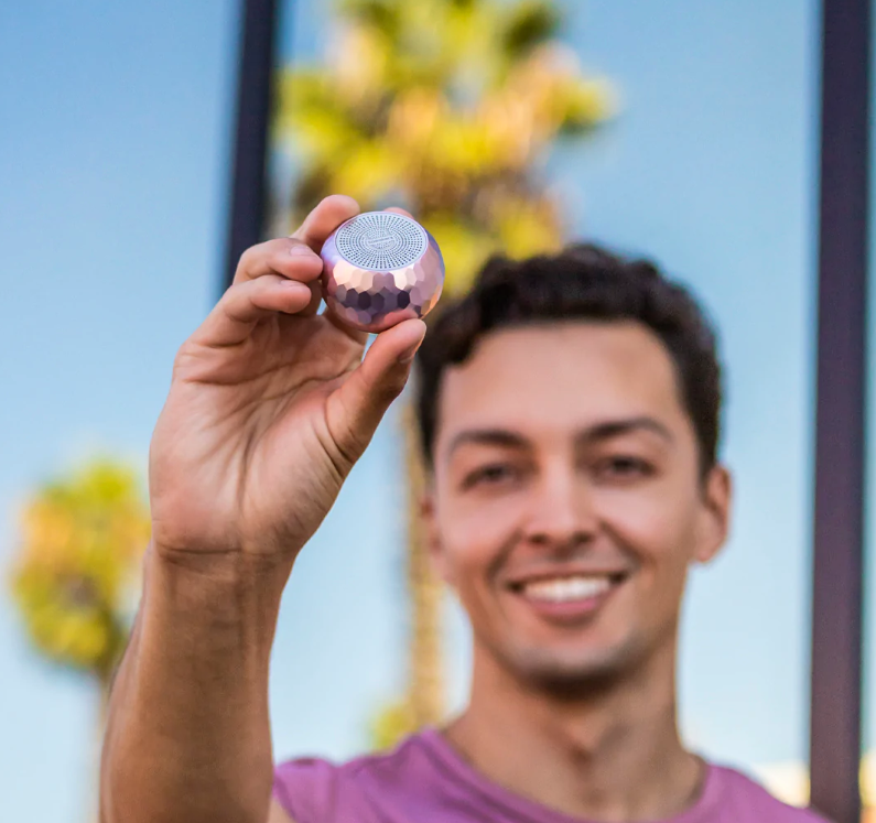 The perfect combination between a stationed speaker and one that can go with you everywhere! This mini speaker in glam lilac is not only stylish but delivers exceptional sound.