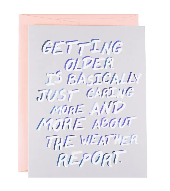 Card is size A2 (4.25" x 5.5"), 130lb. 100% recycled paper. Vegetable inks. Comes with a matching light orange envelope. Card comes wrapped individually in a cello.