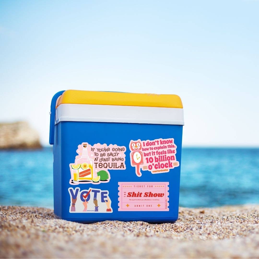Add a touch of humor to your life with this joyful "If You're Going to be Salty, At Least Bring Tequila" sticker. Perfect for any surface, this funny sticker is sure to bring a smile to your face and those around you. Your laptop. Your water bottle. Your car. If they don't stand for something, they'll fall for anything. Or is that people? Hm... This die cut sticker features my signature hand lettering and design. Made from a durable vinyl with a laminate that protects your stickers from scratching, rain and sunlight. Approximately 3 in x 3 in Please note: Accessories not included. But they look really cute, don't they?