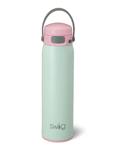 This innovative push-button cap with locking mechanism makes hydrating on the go leak free and worry free. Pop open the top to easily sip and flip open the cap to refill without the inconvenience of twisting it off. The innovative lid design gives you the option to sip freely or chug quickly. Grab-and-go flex handle is convenient for carrying on hikes and hooking in lockers.