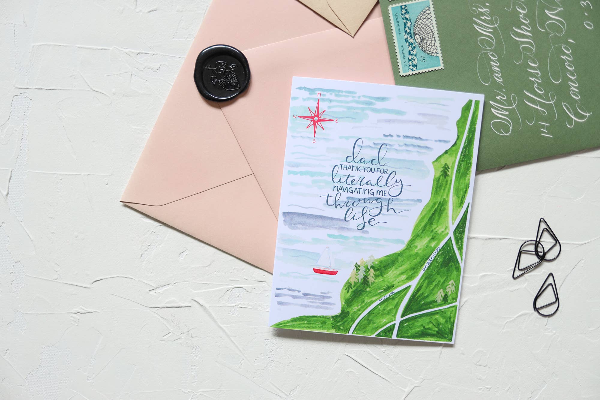 Dad Thank You For Literally Navigating Me Through Life Card Size A2 card printed on 100 lb smooth high-quality paper with a white envelope.