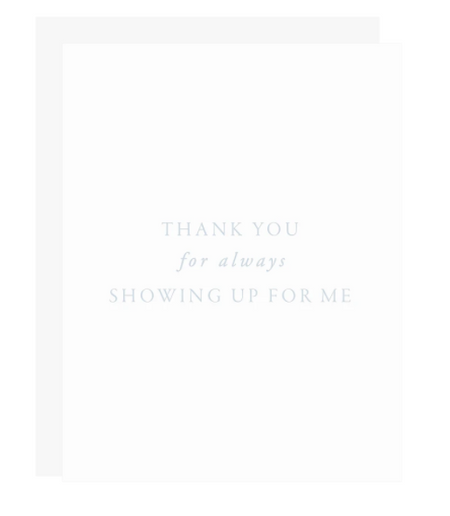 Thank You for Showing up Card $5.75 Thank You for Showing up Card $5.75 | / Qty This item is a recurring or deferred purchase. By continuing, I agree to the cancellation policy and authorize you to charge my payment method at the prices, frequency and dates listed on this page until my order is fulfilled or I cancel, if permitted.
