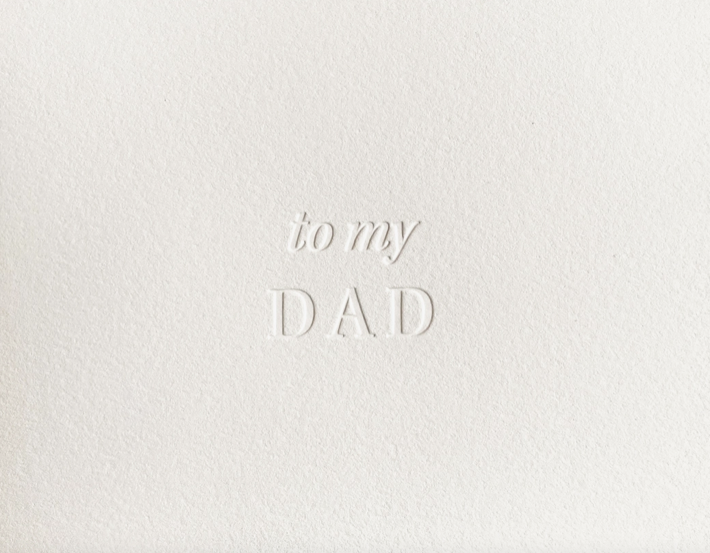 Featured on BRIDES, Bridal Musing, & The Knot. This card is made of 100% cotton paper, letterpressed blindly (without color) to create a clean, minimal, textured affect. This product is A2 (4.25x5.5”, 8.5x5.5" when opened), opening up to a blank card in order to write a personal note to your parents! Envelope made of 100% cotton paper, exact same color as card—A2 in size (4.375x5.75”)