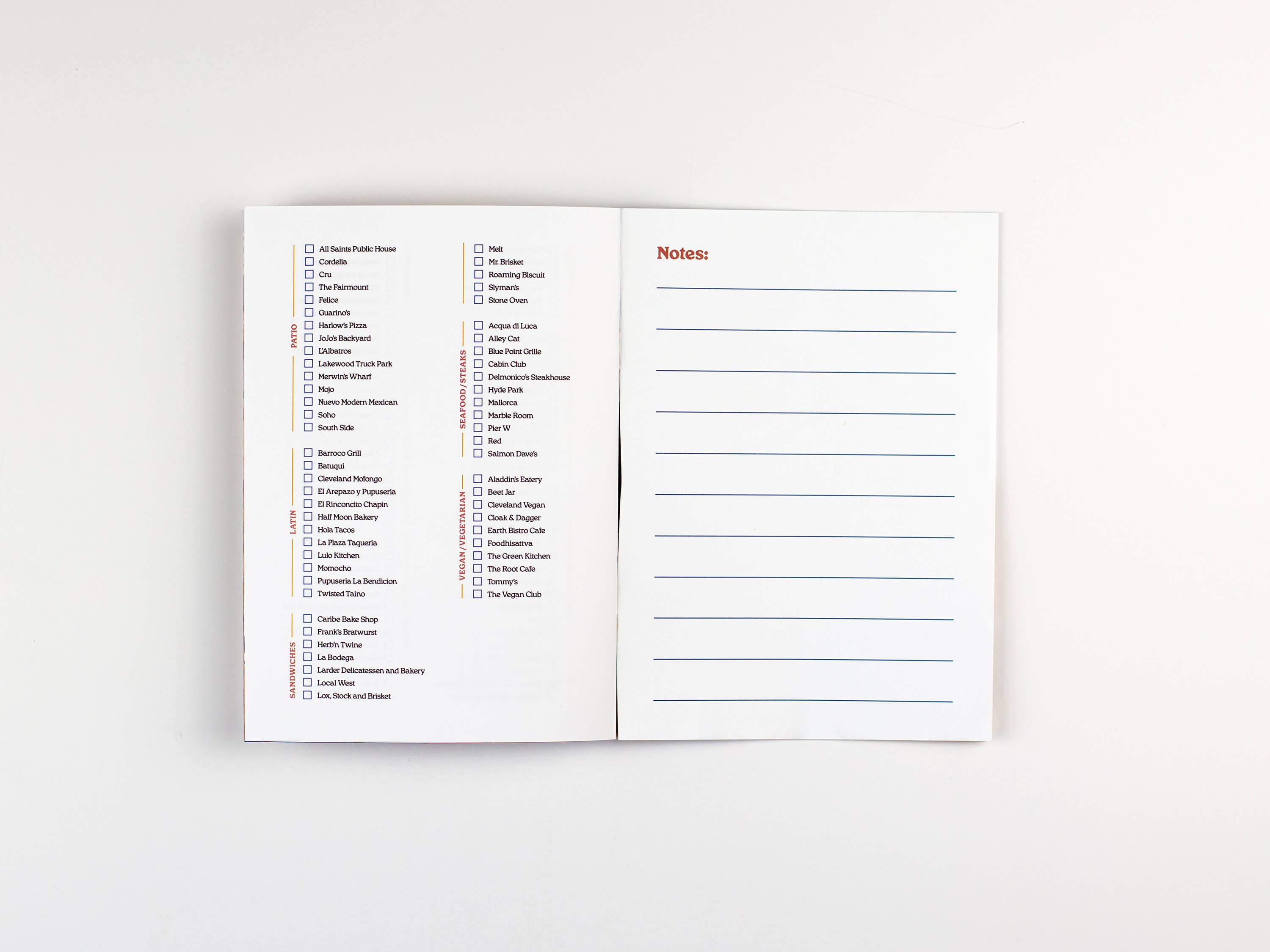 Looking to explore the best independent restaurants that Cleveland has to offer? Look no further than Cleveland Eats: A Restaurant Bucket List. This beautifully illustrated guide features 16 lists of eateries, categorized by cuisine, that are sure to please any palate. Whether you're looking for the best pizza or the best Chinese food, this guide has you covered. Plus, with an introduction to each section featuring some Cleveland food history, you'll learn more about the city's rich culinary culture as you work your way through each list. Cleveland Eats will make a great gift for both locals and visitors who want to experience the best that Cleveland has to offer. Categories include: Asian/Indian Bakeries and Cafes BBQ Beer, Wine, and Cocktails Black-Owned Breakfast & Brunch Burgers Dessert Italian/Mediterranean Latin Middle Eastern Patios Pizza Sandwiches Seafood/Steaks Vegan/Vegetarian Product Details: 5" x7" 36 pages Written by Douglas Trattner Designed by Brian Barr